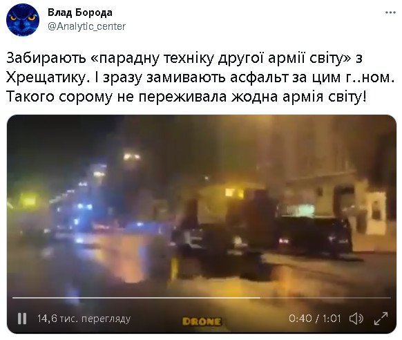 Забирають «парадну техніку другої армії світу» з Хрещатику. І зразу замивають асфальт за цим г..ном. Такого сорому не переживала жодна армія світу! дивіться відео