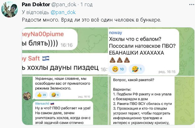 безграмотное не знающее русского язьіка существо очнулось и провозгласило... минимум 5 ошибок в русском тексте. садись, два. подучишь, придешь на єкзамен. а пока пшел вон.alexey252 писал(а): ↑Вс янв 15, 2023 1:45 amНу что укронацисты как жизнь ?? Плачите ? За что боролись на то и напоролись! Почему сейчас не прыгаете кто не скачет тот москаль ???Не до прыгания сейчас ?