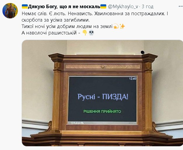 безграмотное не знающее русского язьіка существо очнулось и провозгласило... минимум 5 ошибок в русском тексте. садись, два. подучишь, придешь на єкзамен. а пока пшел вон.alexey252 писал(а): ↑Вс янв 15, 2023 1:45 amНу что укронацисты как жизнь ?? Плачите ? За что боролись на то и напоролись! Почему сейчас не прыгаете кто не скачет тот москаль ???Не до прыгания сейчас ?