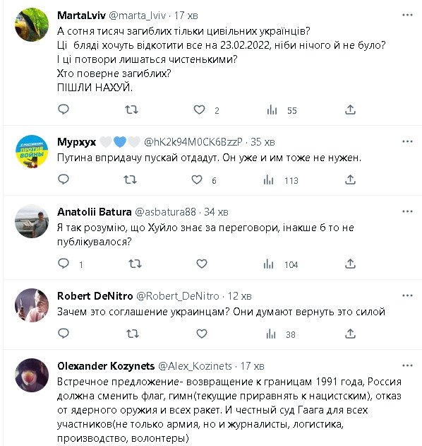 "Как может жить и развиваться страна, где единственной идеологией является зарабатывание бабок и удержание власти одной группой людей?" – спрашивает собеседника Роман. "Никакой же концепции "дальше" нет. Они помрут, [блин], в какой-то момент времени и не оставят за собой ничего. Это просто будет выжженная пустыня", – продолжает мужчина с голосом, который приписывается Троценко. Николай только вздыхает, а Рома и дальше сетует – не до всех россиян дошло, что происходит. "Потом эта простая [фигня] дойдет до всех, до каждого. И выяснится, что уже поздно. Люди не смогут вывести деньги, не смогут выехать, их дети призваны на войну… [Ужас], короче", – заканчивает он мысль.