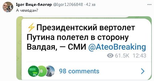 Как там тревожные чемоданы Z-патриотов и куда валить? У бункерного уже все заполнены и сильно воняют. Беларусы должны не упустить свой шанс. Картофельный уже обосрался тоже. Пора и вам жить свободно, вы свободный народ не ровня Z-патриотам.