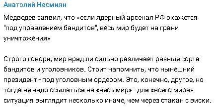 По словам экс-президента, развал России начался еще в 2008 году, когда мы не отдали Тбилиси. Потом этот процесс продолжился и сейчас подходит к концу.
