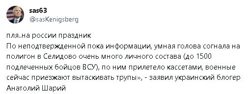 Полигон Селидово стал очередной братской могилой для неустановленного пока количества ВСУшников. Ну, как "неустановленного"? В Сети уже мелькают цифры от 500 до 1700 человек.