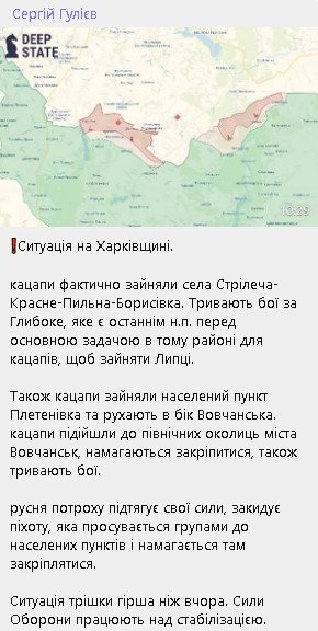 Никакого наступления группы N нету.Движение в Харьковской области производят всего 4 ОБТГ и все.Которые просто корректируют огонь РСЗО,арты и ФАБов,и мелкими тактическими группами продвигаются вперед по мере возможности.