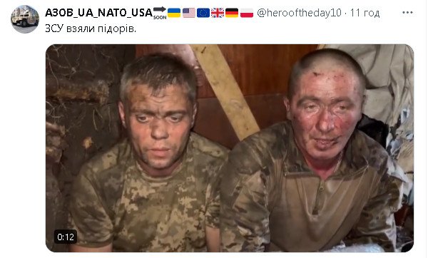 Теперь вы стали тут недочеловеки которых надо мочить и даже не сомневаться.(Поэтому вас на фронте мочат из всего что можно и без жалости и негласный закон пленных не брать.Самый минимальный процент взятия пленных это части с ДНР ЛНР,самый большой процент взятия пленных у ВДВ,видно не все атрофировали у них)