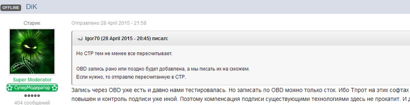 как сказали на соседнем форуме, кс не считается там. пишиться с разбором, пересчет кс и рца не нужен. у меня другой редактор не считает кс и рца для данного блока.Chipexp писал(а):Модулем можно только редактировать калибровки во флешь, КС и подпись если поодерживается ЧЭ то и это, если нет то нет пересчета . Это больше вопрос Денису (разработчику ЧЭ)Pashkovskiy65 писал(а):Т.е. и цифровую подпись пересчитывает?Chipexp писал(а):Позже выложу.