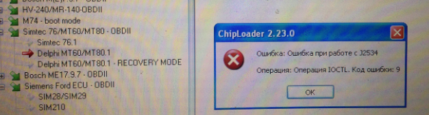 Подскажите в чем причина? Не могу сконектится к Авео с МТ80. Паспорт не выдает и флеш не читает. Ошибка на скрине.