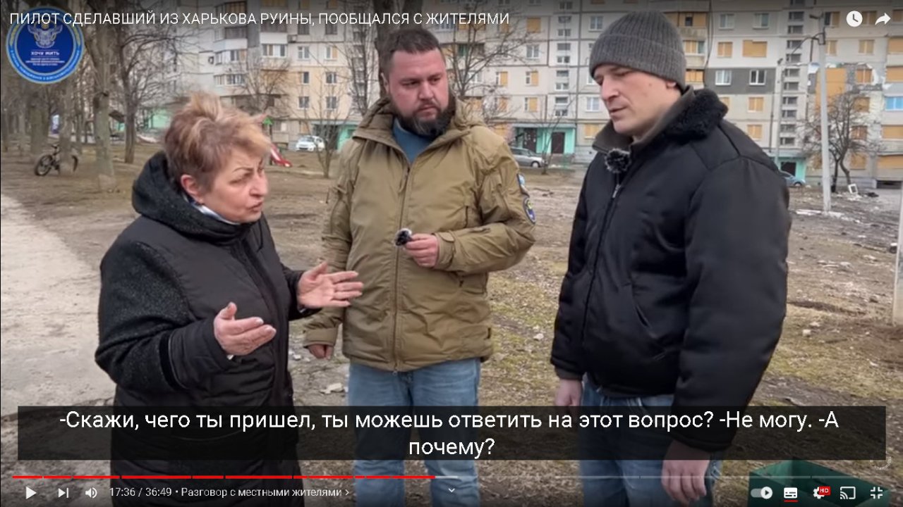 Беседа журналиста с подбитым летчиком , подполковником Косиком , бомбившим Харьков. https://www.youtube.com/watch?v=WOfFb8JnYIQ