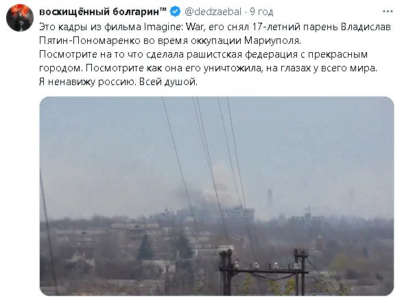 России очень приятно,что вы ее с помощью своего Голливуда делаете очень сильно пострадавшей страной.Вы и дальше лепите хрень,что бы мир думал как сильно пострадала Россия и не пострадала Украина.России это очень выгодно.Она вас будет и дальше миллионами уничтожать,а вы будете врать и радоваться.