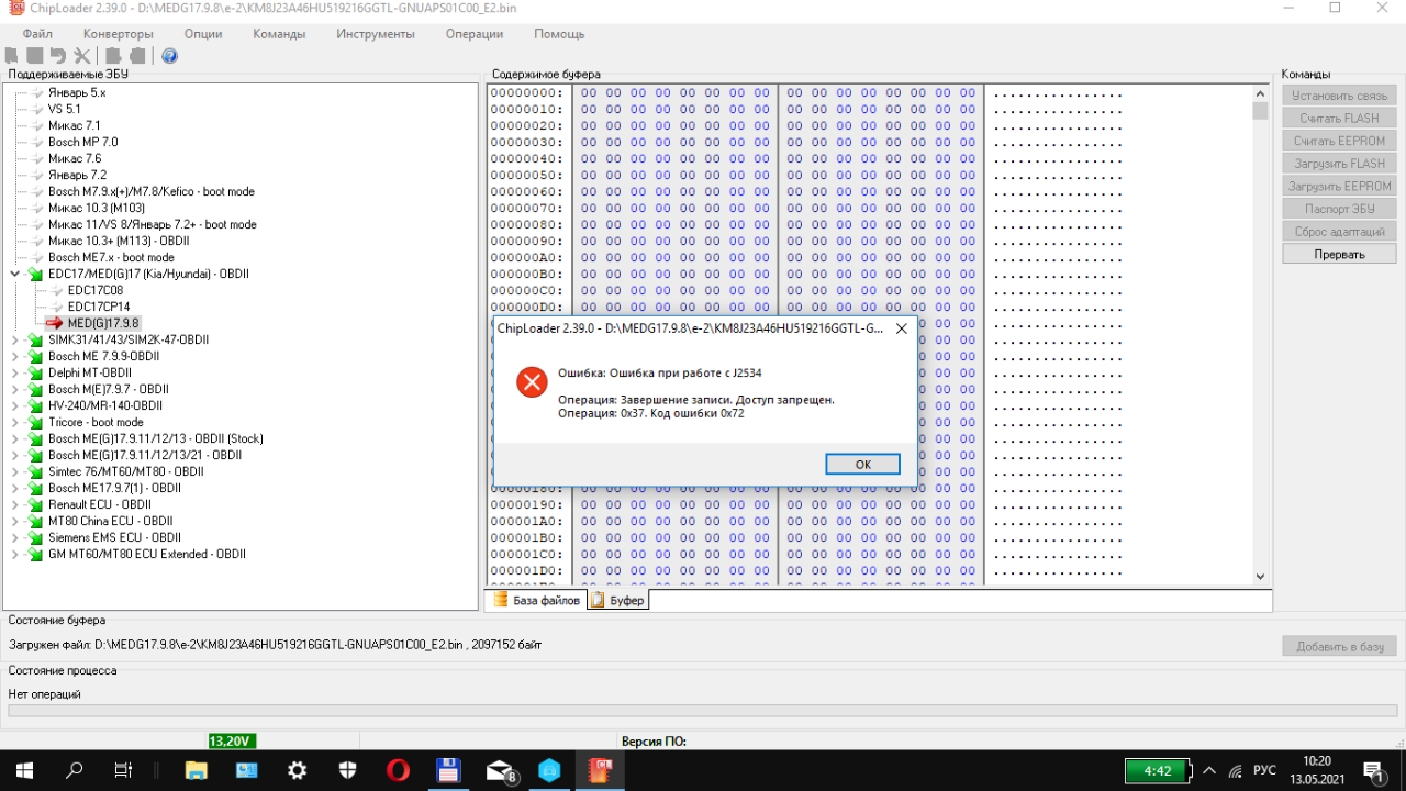 А вот с записью немного понервничал.В конце записи ошибка.Пробовал и калибровки и все содержимое.Родной софт записал отлично и быстро.Тюн прошивка была с подсчитаной кс.Для эксперимента поставил галочку пересчитать кс