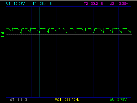 Смущают провалы до 10В и иногда появляющиеся скачки до 16.